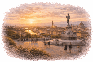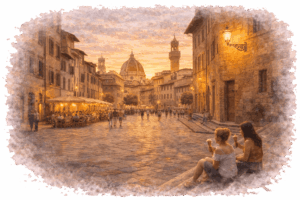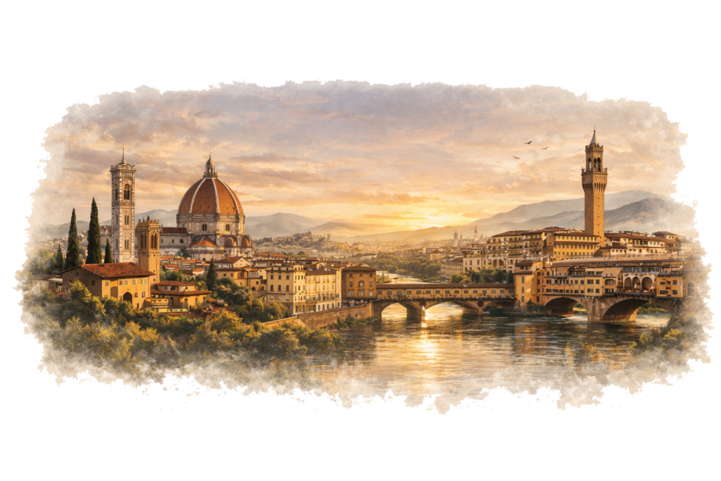 Η Φλωρεντία δεν είναι μόνο αξιοθέατα· είναι βόλτες χωρίς προορισμό, μικρά καφέ, παγωτό στα σκαλιά μιας πλατείας και το φως που χρυσίζει τα κτίρια στο τέλος της ημέρας.