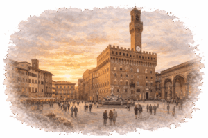 Περπατήστε μέχρι την Piazza della Signoria και το Palazzo Vecchio, όπου η Αναγέννηση ζωντανεύει μέσα από γλυπτά και ιστορία.